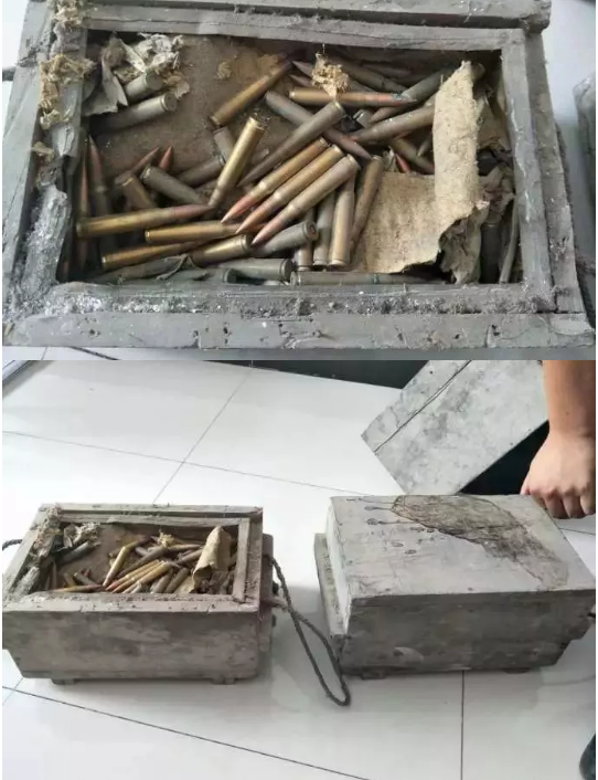 16日,颍东区居民龚某将家中危房推倒的时候,在墙角土堆处发现了两箱子弹龚某立刻报警,颍东区杨楼派出所民警,立即将两箱1952年制造的步枪用子弹带回并妥善存放,据了解,龚某的父亲曾任镇政府武装部长,现父